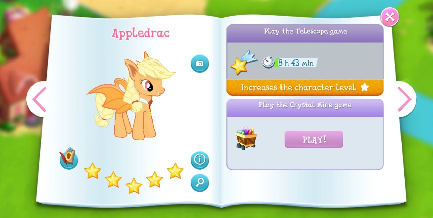 Appledrac is a pony who lives in Ponyville. She was added in Update 4.7 in the Nightmare Night Update in 2018. She is the vampire variant of Applejack.