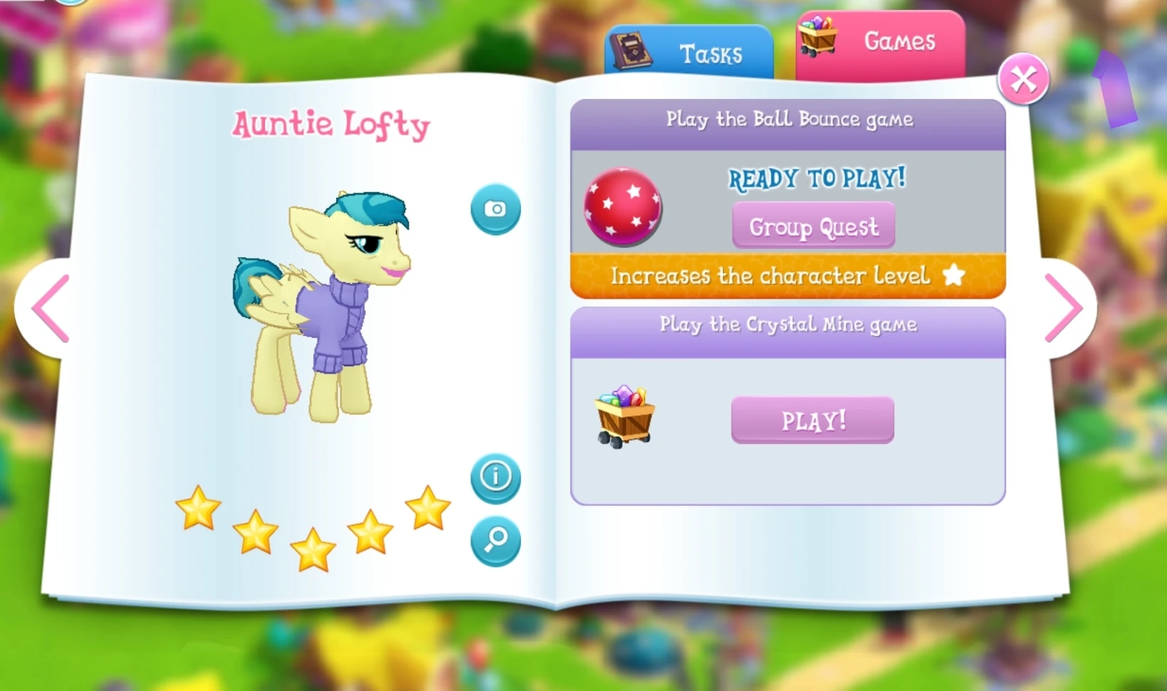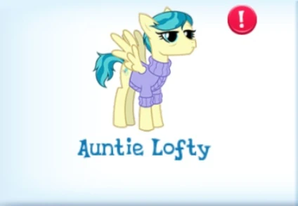 Auntie Lofty is a Pegasus mare added in Update 6.3. She is Scootaloo's aunt, and Aunt Holiday's very special somepony.