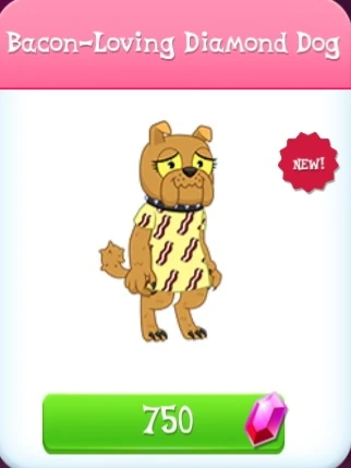 Bacon-Loving Diamond Dog is a diamond dog added in Update 7.8. They are a helper in stage 4 of the Danger in Dimondia Limited-Time Siege.