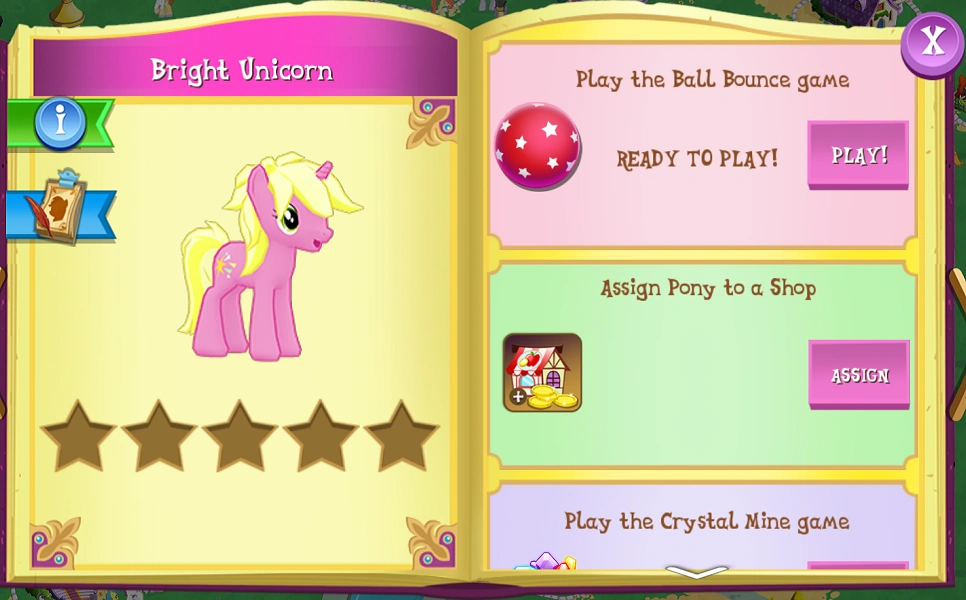 Bright Unicorn is a Unicorn Mare that lives in Fairweather Home in Canterlot. She was 200