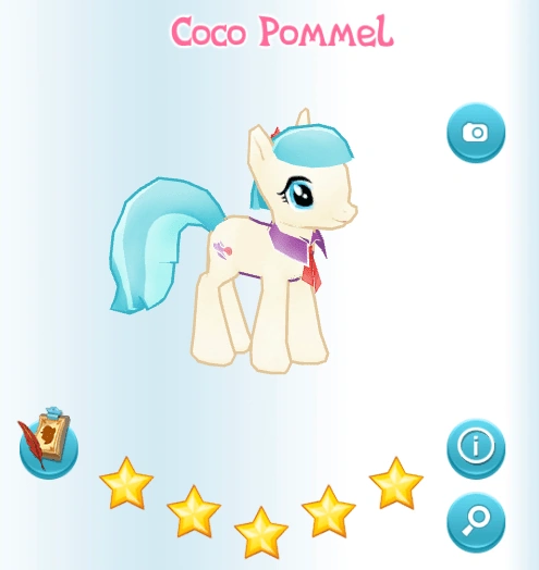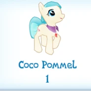 Coco Pommel is dressmaker earth pony who lives in Coco Pommel's Boutique in Canterlot. She was added in the Everfree Forest update.