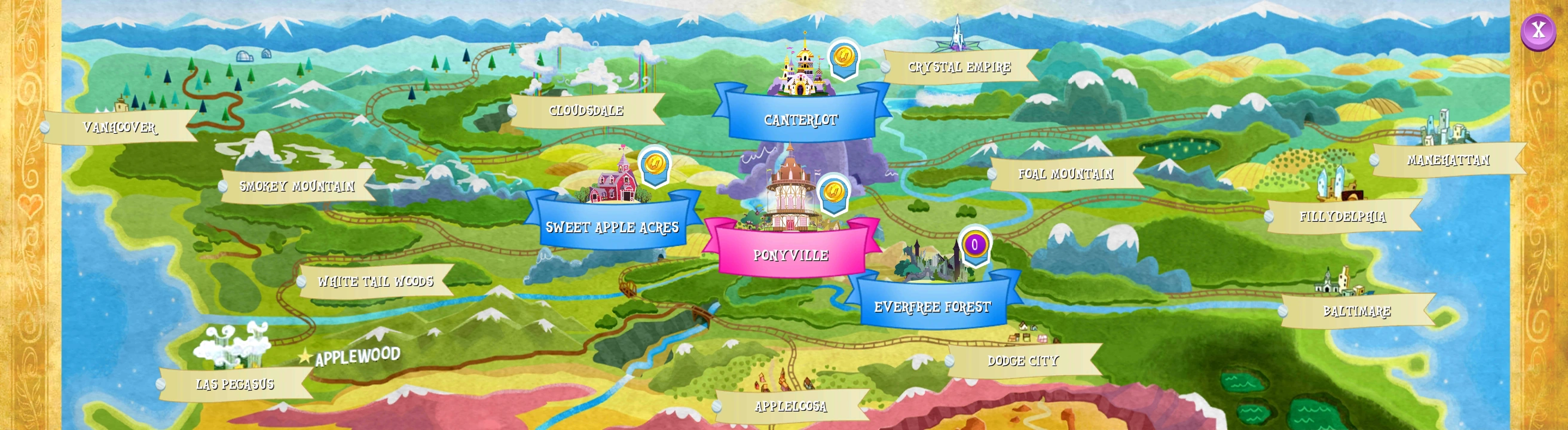 The Crystal Empire is one of the locations shown on the world overview map in My Little Pony. The location was made playable in Version 3.1 (Update 21) on September 28, 2016.