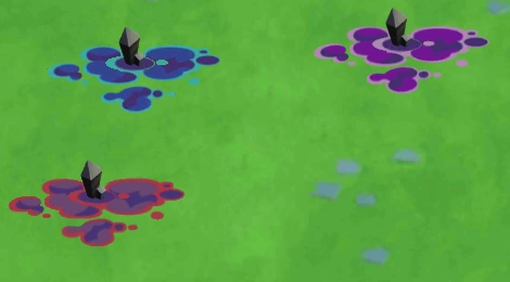 Regular black crystals can be of three different sizes and can be removed for bits, similar to obstacles in other locations. Colored black crystals can be removed with a set quantity of Element Shards of matching color.