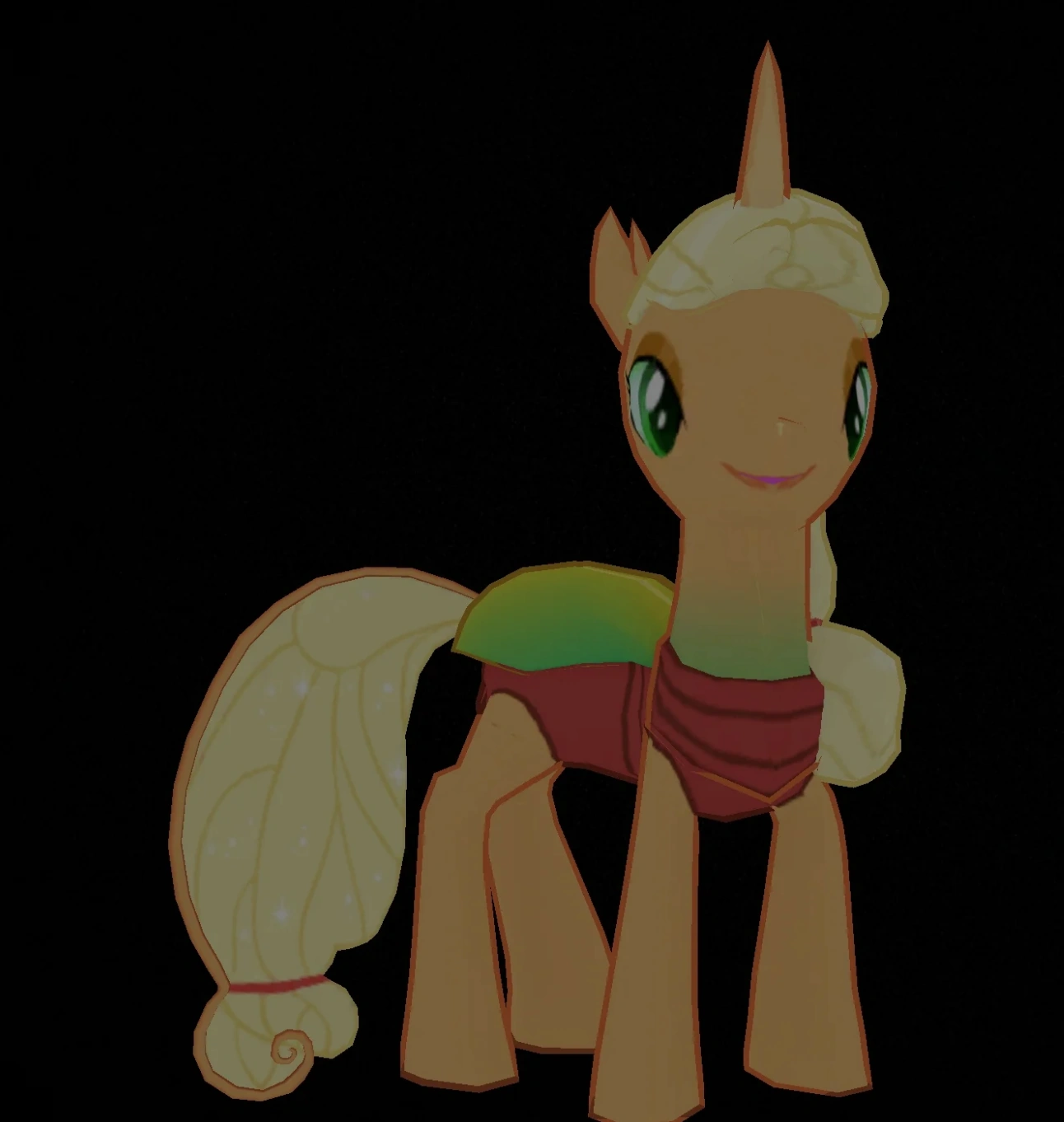Dark Changeling Applejack is a variant of Applejack. She was added in Patch 7.2.0, and both variants are helpers in boss stage 2 of the Changeling History quest.