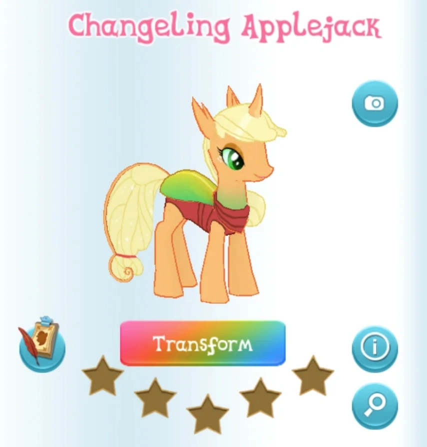Unlike most other characters in the game, the Dark Changeling Mane 6, Celestia and Luna, possess an ability/mechanism that allows the player to transform them into their alternate appearance(s), if the player has also purchased their alternate appearances from the Collection or Shop. Unlike the initial Dark Changelings, they can only be bought per 600