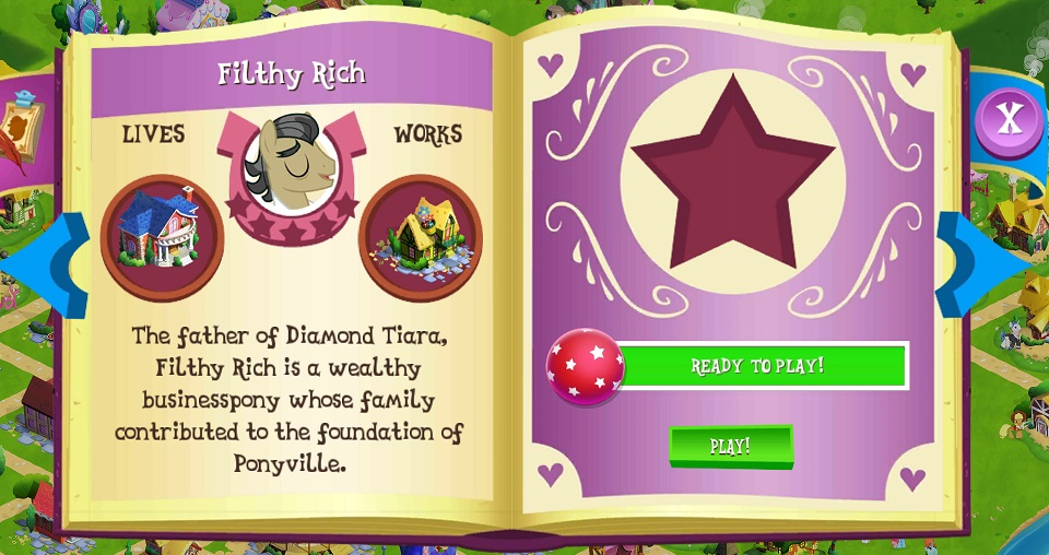 The father of Diamond Tiara, Filthy Rich is a wealthy businesspony whose family contributed to the foundation of Ponyville. | ||||