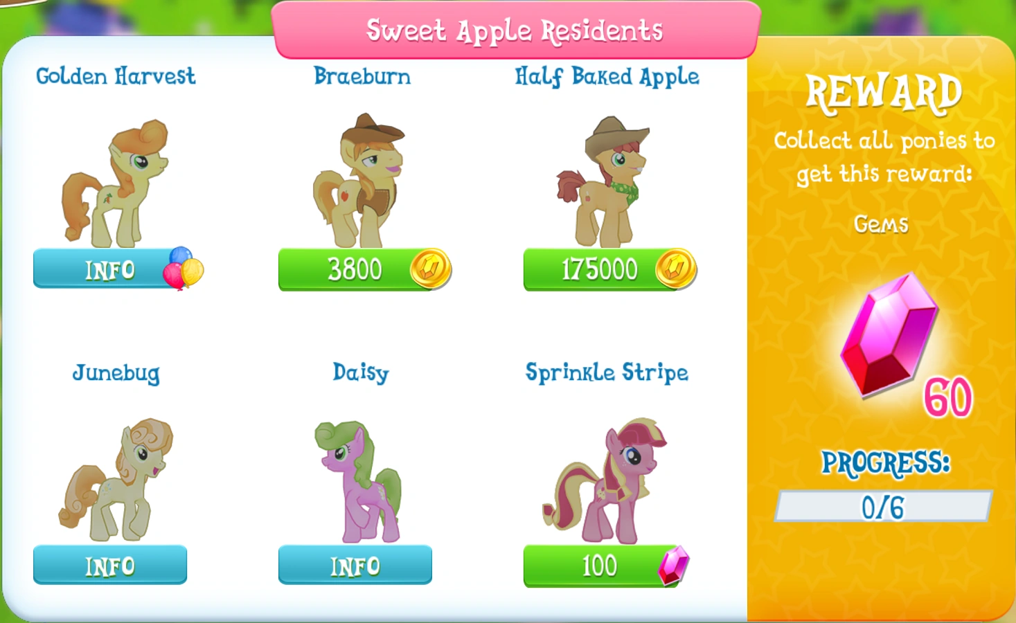 Half Baked Apple is a member of the Apple family who lives in Sweet Apple Acres. He was added in the Sweet Apple Acres update.