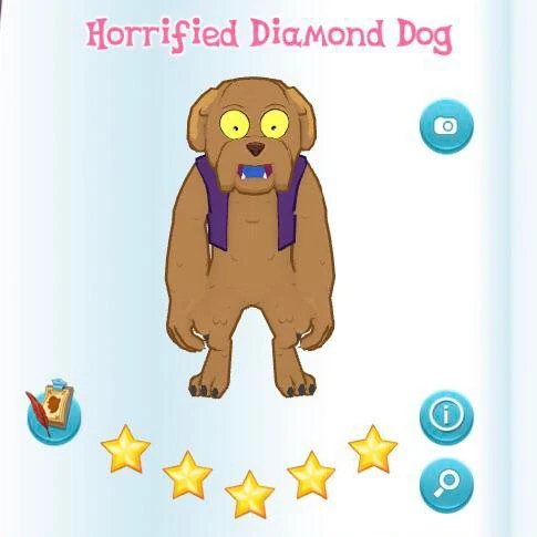 Horrified Diamond Dog is a diamond dog added in Update 7.8. They are a helper in stage 4 of the Danger in Dimondia Limited-Time Siege.