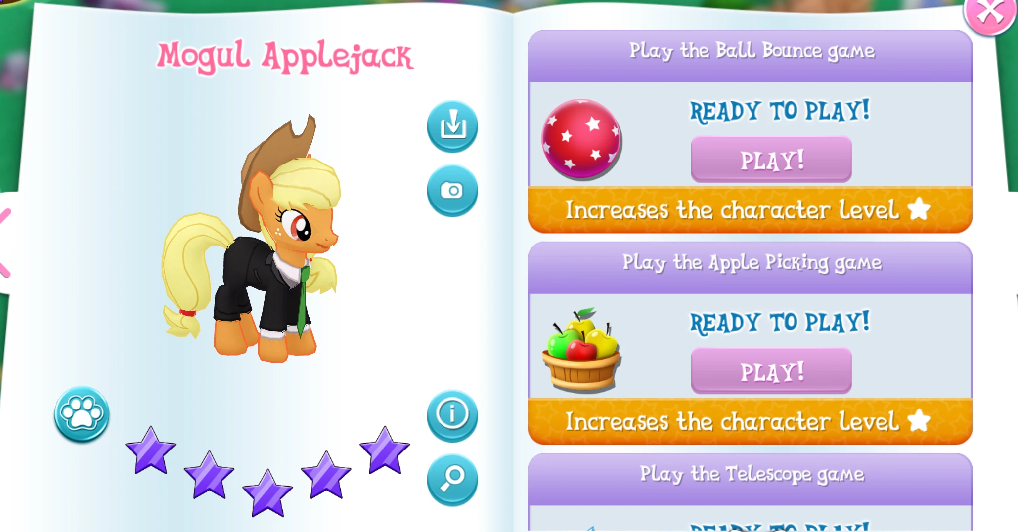 Mogul Applejack lives in Ponyville. She's part of the Ponies of the Dark Water event.