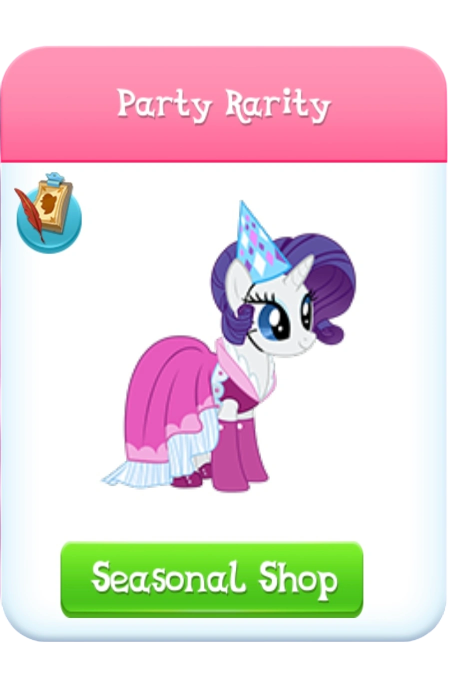 Party Rarity is a variant of Rarity added in Update 9.7. She was added in Celebration of the 12th "Ponyversary" of the game.