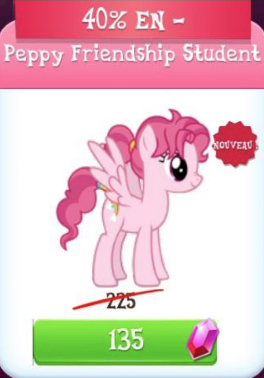 Peppy Friendship Student is a Pegasus mare added in Update 5.0. She could be obtained as a Crystal Mine Game Social Event between 30th January to 5th February 2023.