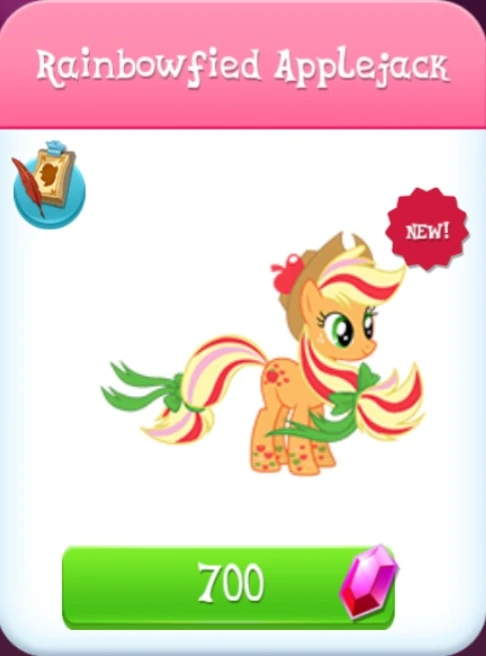 Rainbowfied Applejack is an Earth pony mare added in Update 8.4. She is a blitz helper in the Tale of Tirek Part Three event.