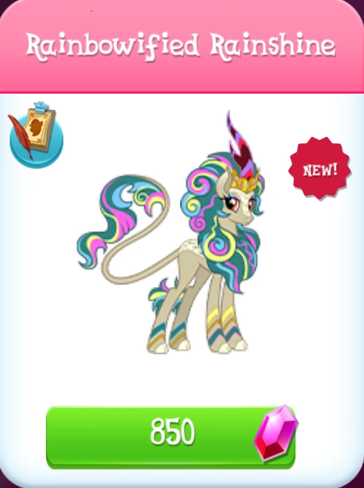 Rainbowified Rain Shine is a female Kirin and a variation of Rain Shine.