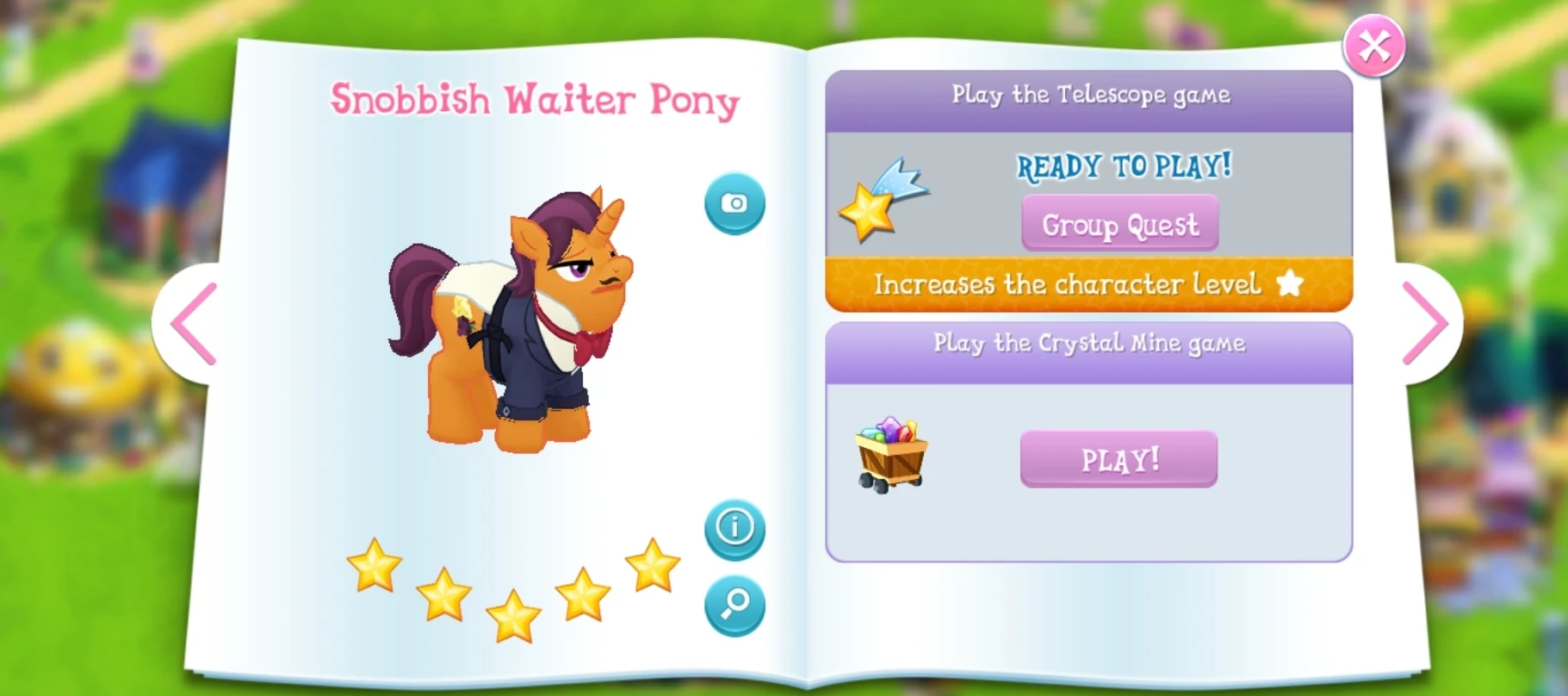 Snobbish Waiter Pony is a unicorn stallion added in Update 5.9/6.0. He is a helper in the Royal Dining: First Course event.