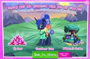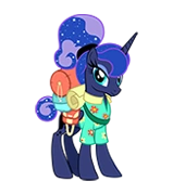 Vacationer Luna is a version of Princess Luna in Ponyville. She was released as a helper for the Zipline Blues event. She is also a community helper in the Mirrors, Mirrors... blitz event.